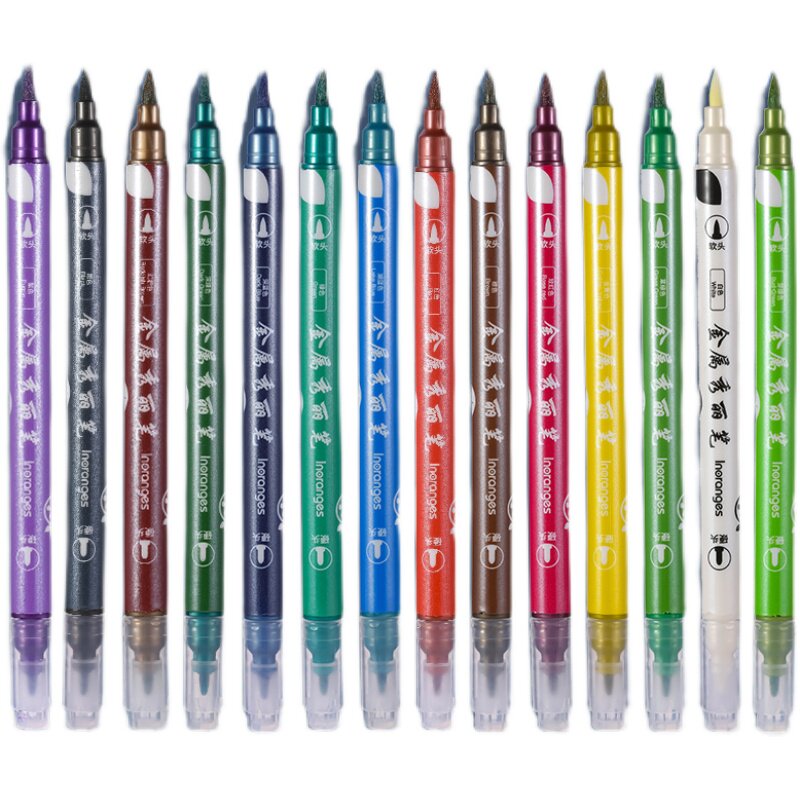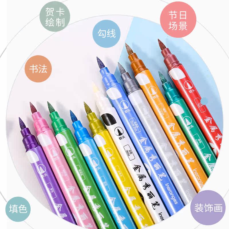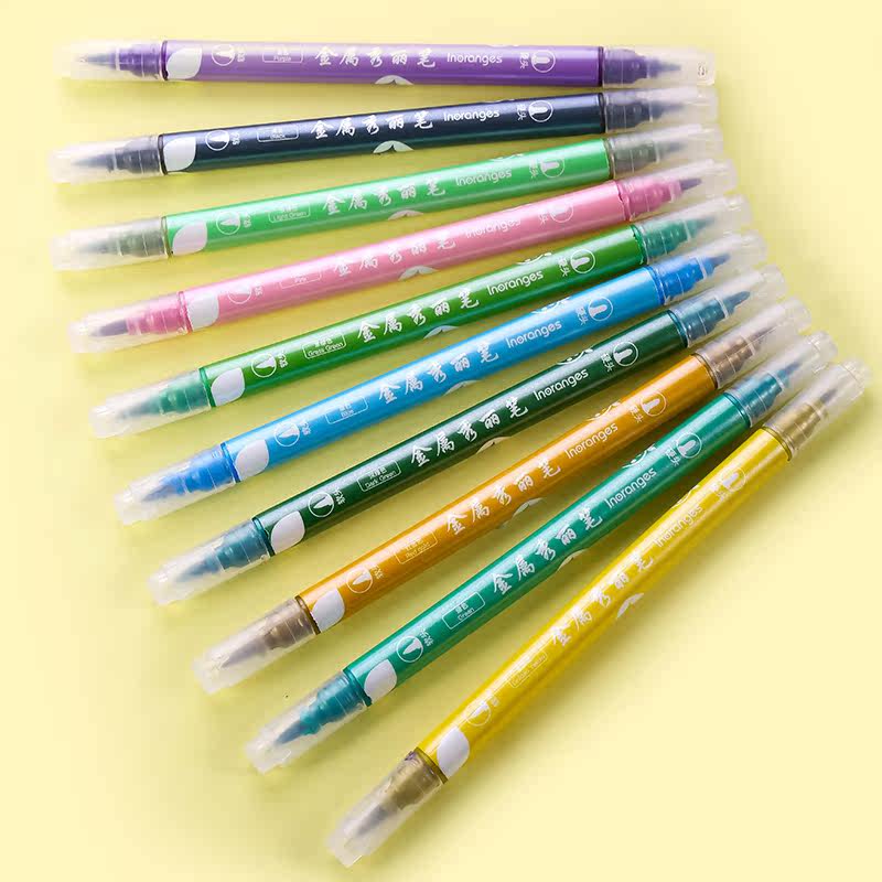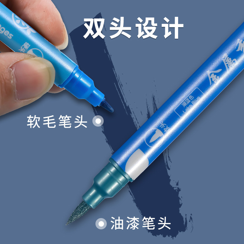 Colorful Flash Metal Show pen double head student used to make hand account pen mark shiny flow sandmark pen large capacity