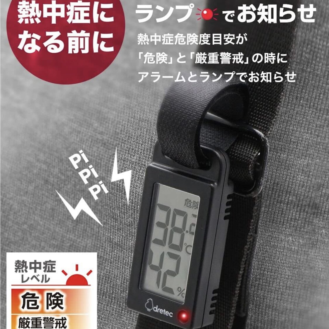 Heatstroke flashing light alarm in Japanese DoliccodRetec's temperature and humidity gauge reminds outdoor sports hanging