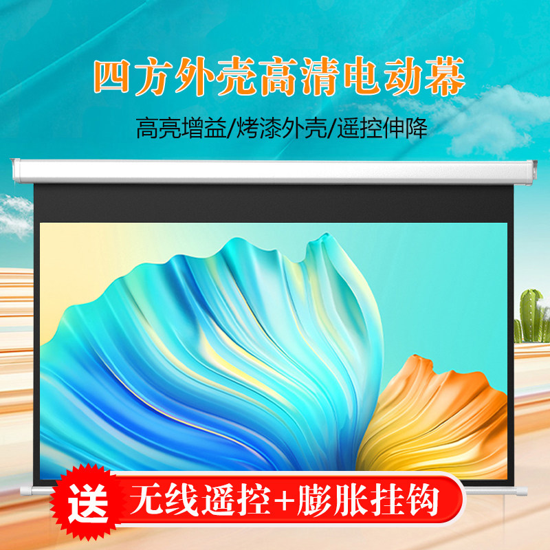 Projection curtain Quadrilateral shell Electric wireless remote control lifting high-definition home anti-light projector 100 inch voice