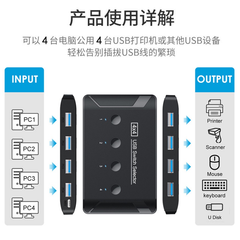 Jimier hub printer sharing multi-computer sharing multi-interface USB3 0 four-in four-out switcher