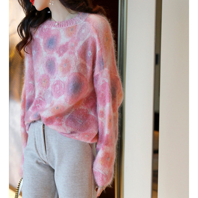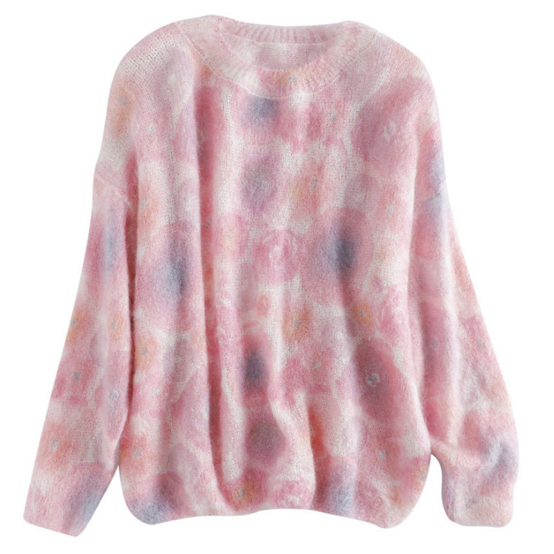 European station 2022 new Western style European goods lazy style exquisite mohair pink raccoon fleece sweater women's winter