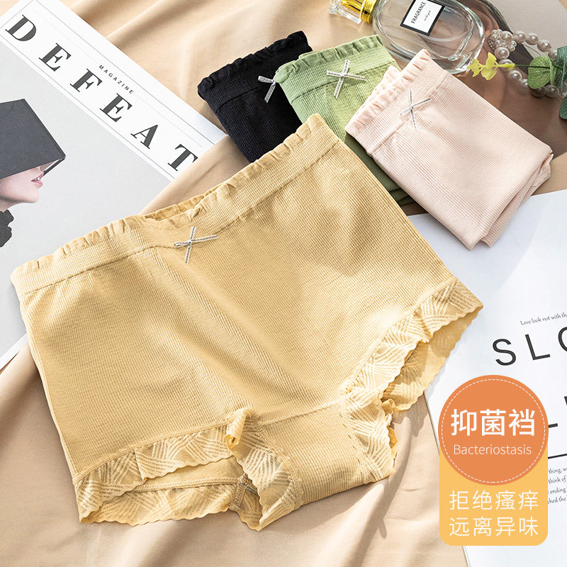 Boxer panties women's seamless mid-waist, abdomen, buttocks, sexy lace edge, cotton crotch, antibacterial boxer shorts, large size MX