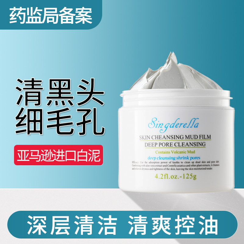 Cleansing mask shrinks pores to remove blackheads and acne close mouth oil control deep mud film Amazon white mud for men