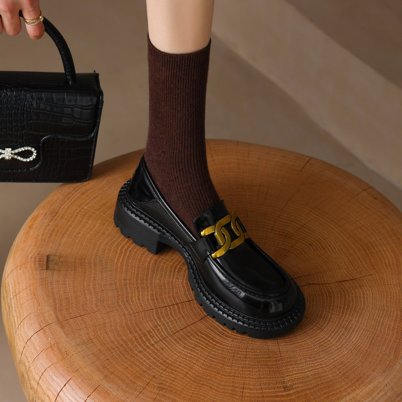 ins is good to wear ~ increase thick sole shoes Englishshoes, one foot, female metal buckle heel