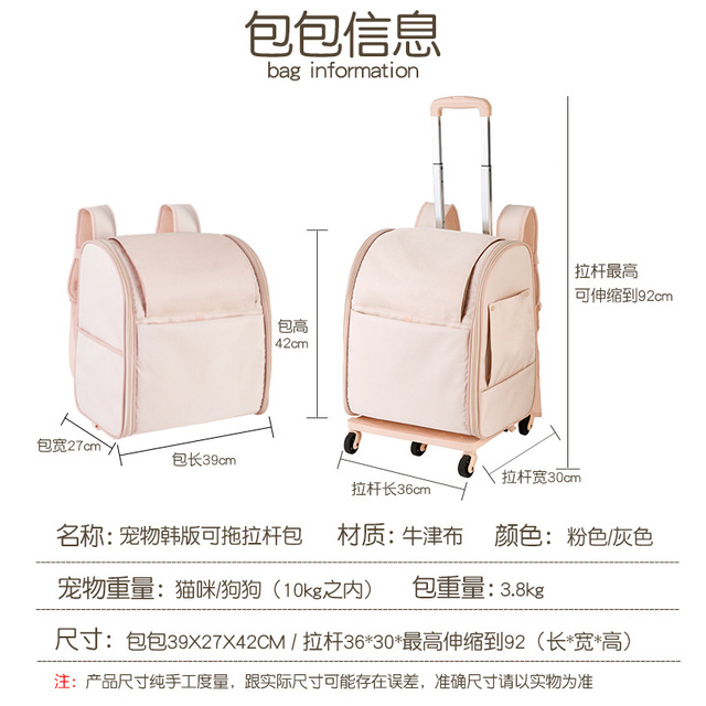 Cat bag going out trolley portable bag shoulder cat backpack warm luggage pet trolley case anti-stress dog bag