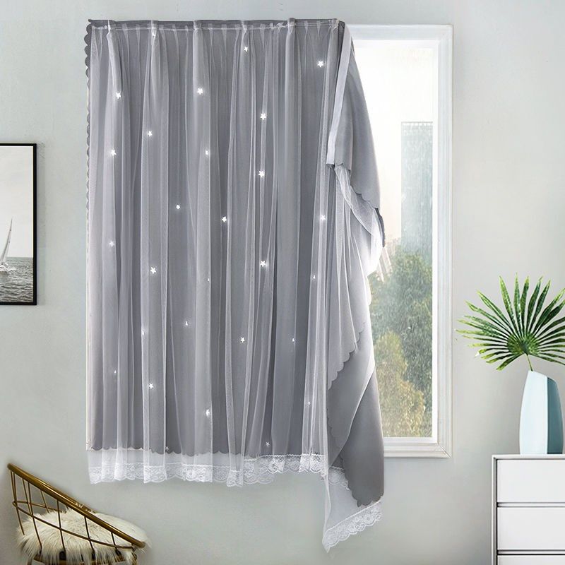 Light blue-hollow star-gauze curtain one pink-hollow star-gauze curtain one gray-hollow star-gauze curtain one lilac purple-hollow star-gauze one navy blue-hollow star-gauze one purple gray-hollow