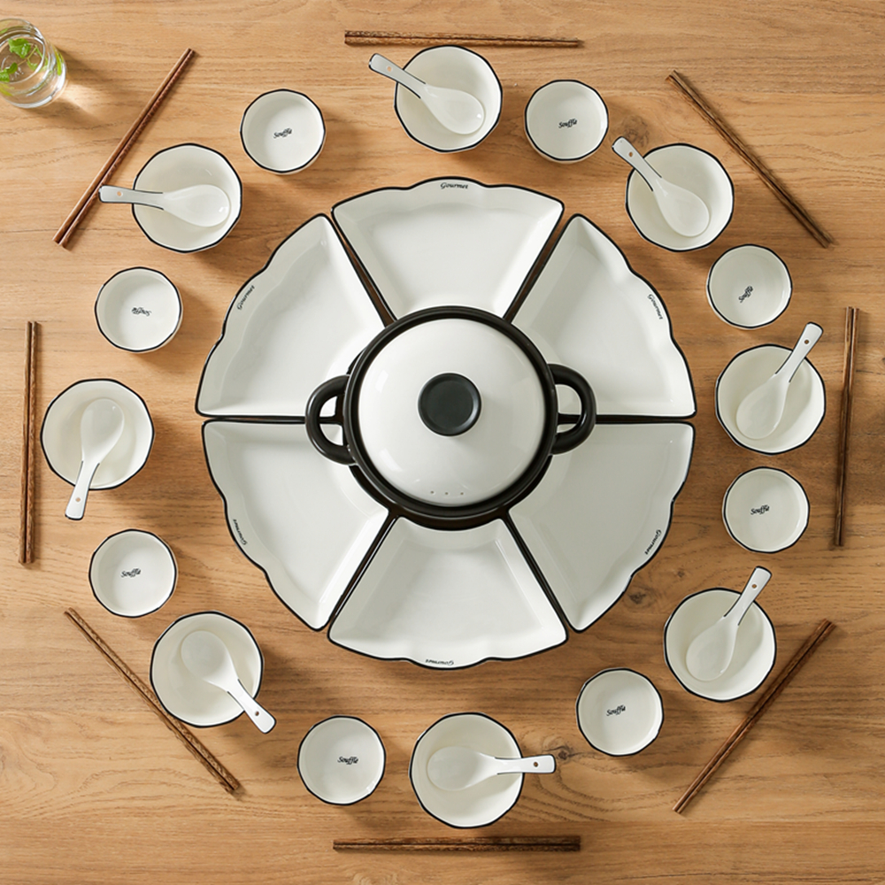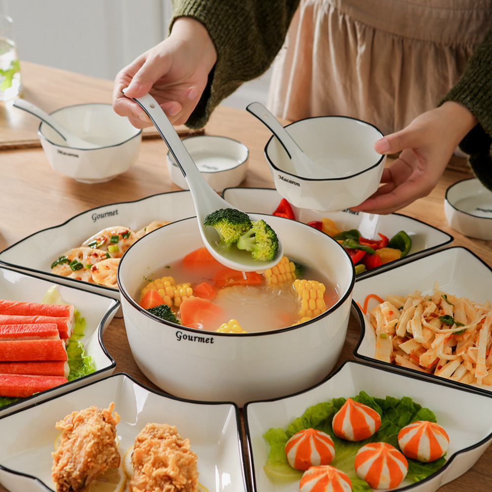 Set plate platter tableware combination set home creative plate seafood party hot pot family reunion ceramic plate