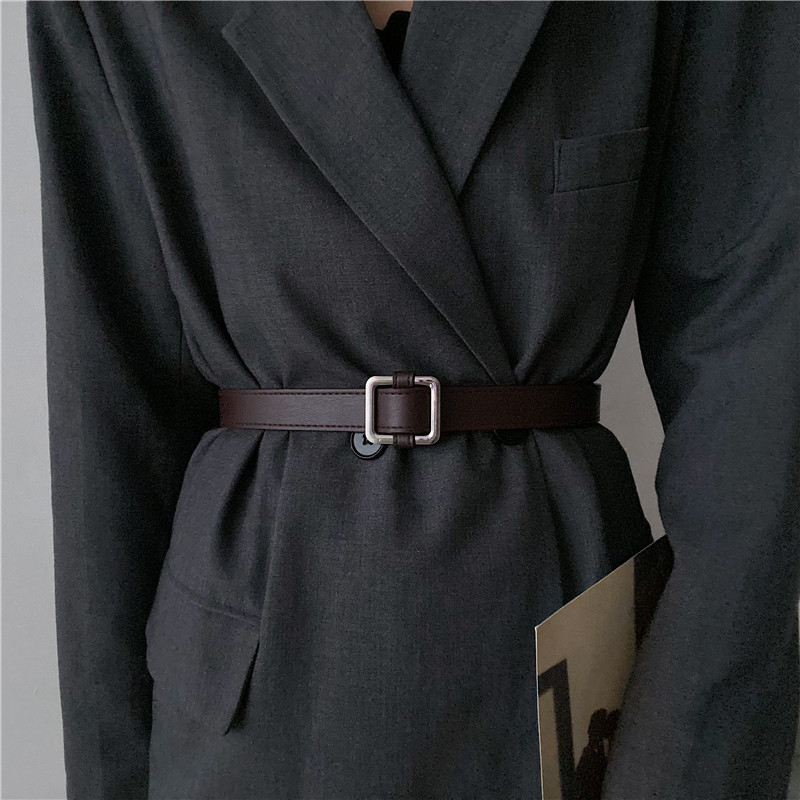Non-porous belt women's ins wind waist fashion decoration with suit coat retro all-match black jeans belt