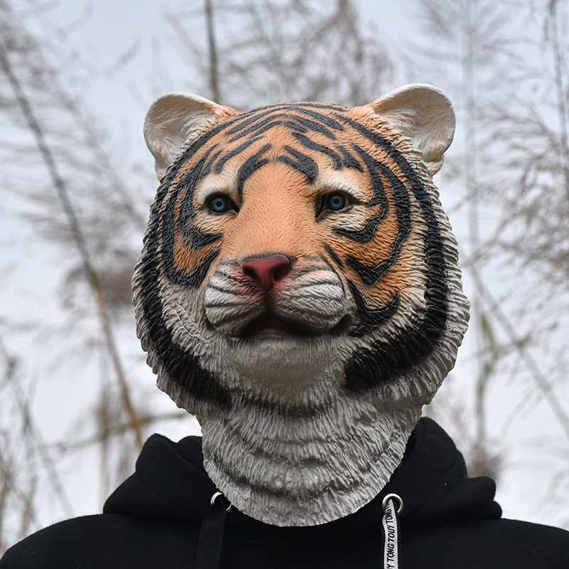 Tiger mask animal latex mask Halloween horror party COS funny tiger annual meeting show tiger headgear