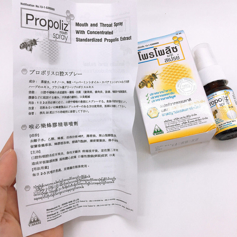 Thai propolis Oral fresh spray throat antibacterial spray deodorant with a long lasting aroma