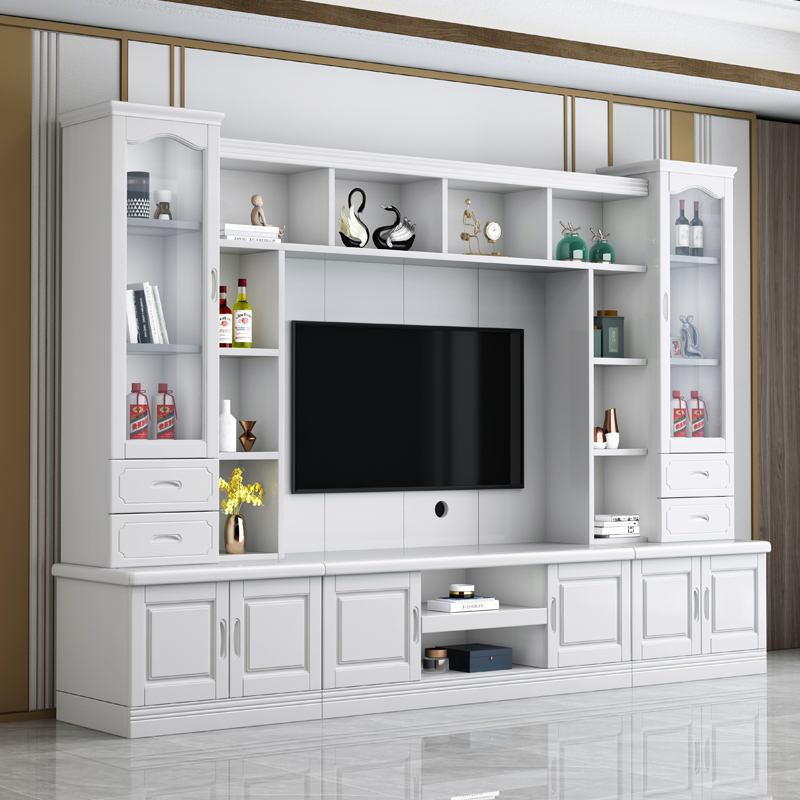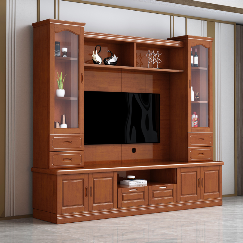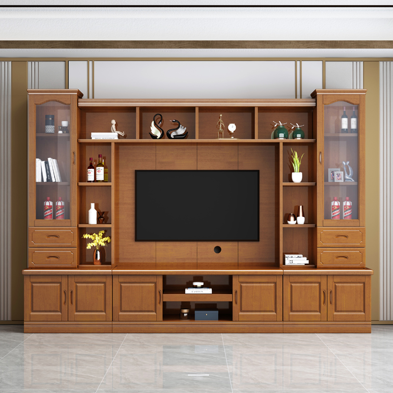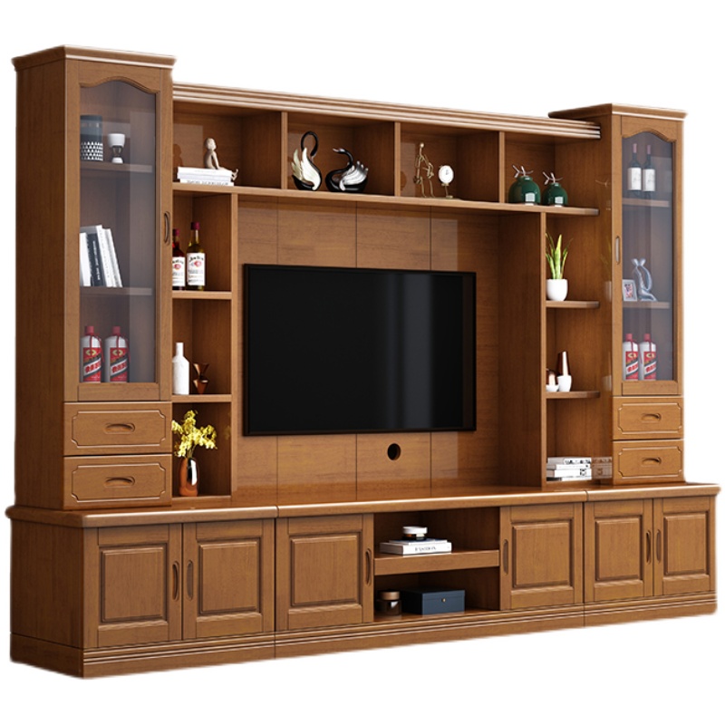 Modern Chinese solid wood TV cabinet background cabinet integrated combination wall cabinet high multi-functional living room overall small apartment