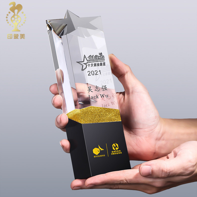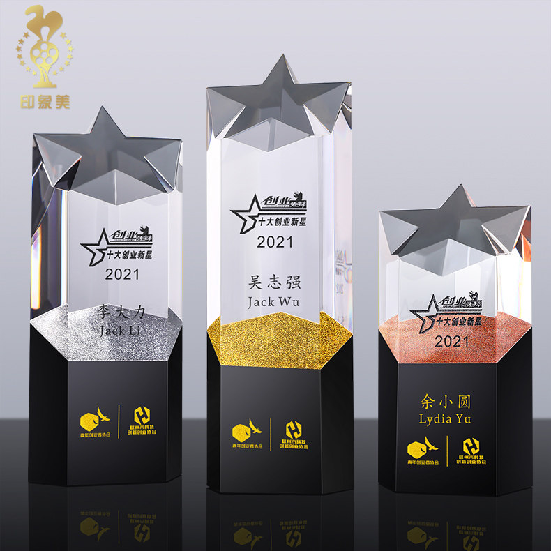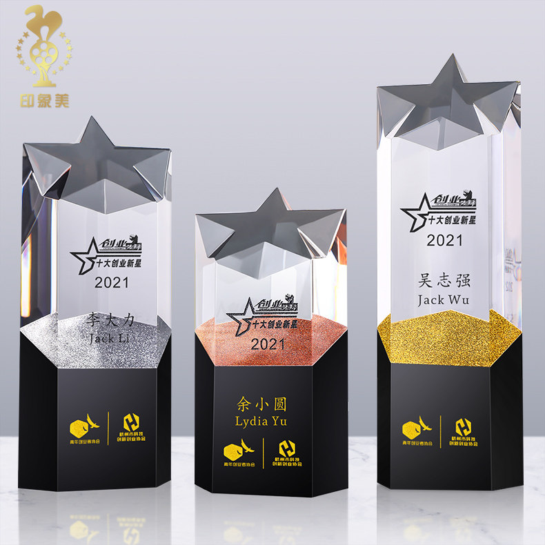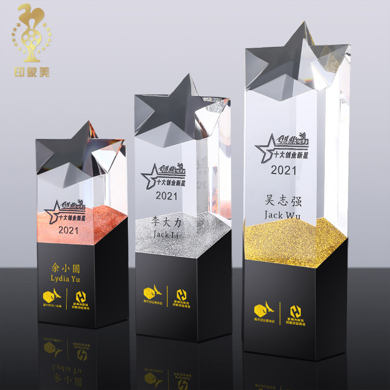 Crystal Trophy Custom Creative Pentagram Enterprise Company Annual Celebration Sales Excellent Employees Annual Conference Medal Set