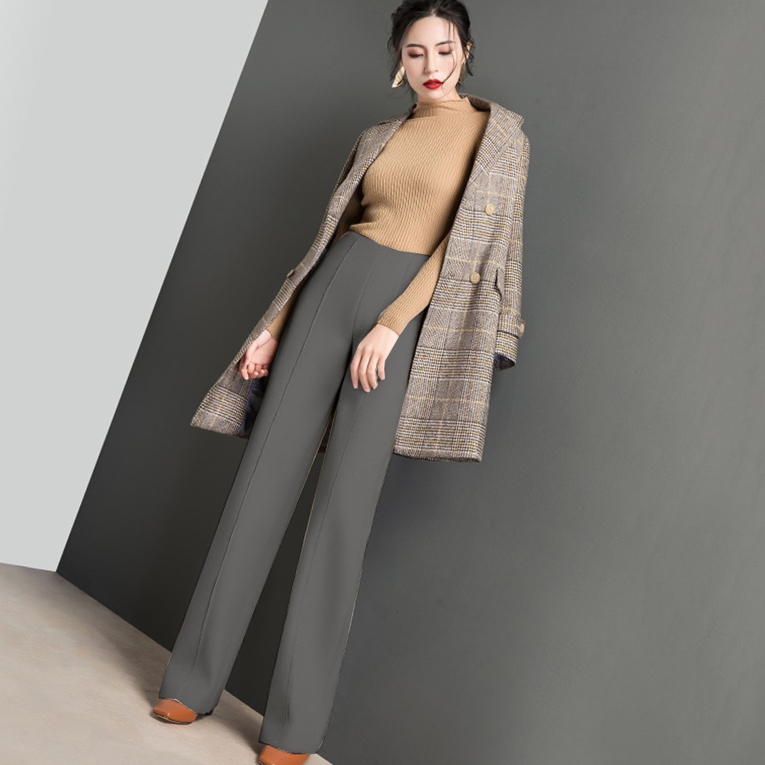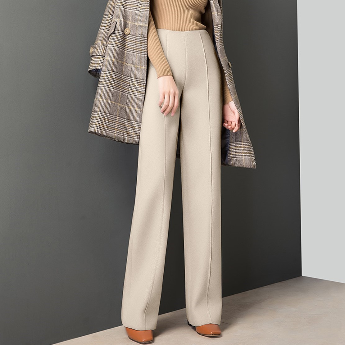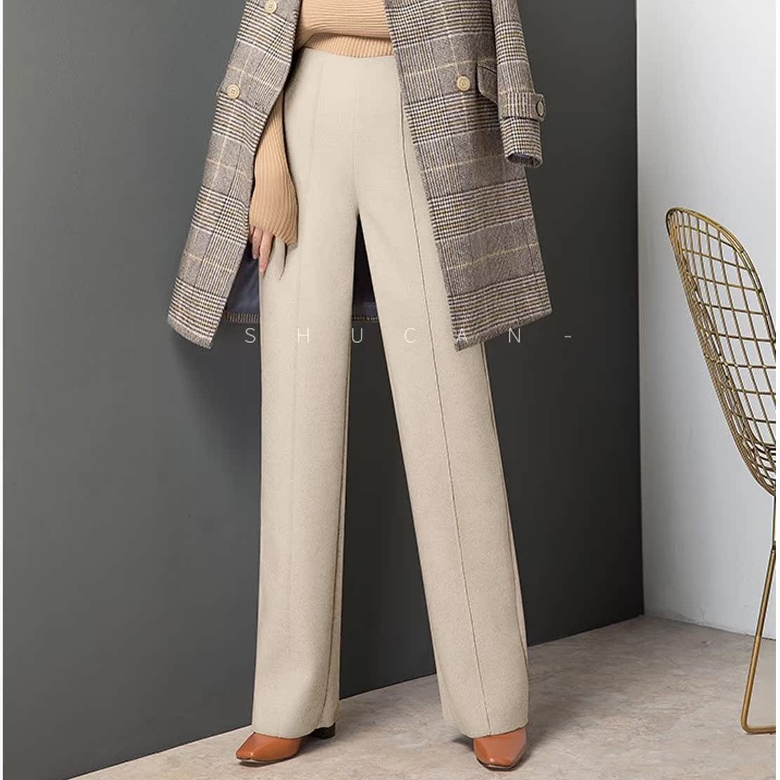 Loose straight trousers 2022 autumn and winter new Korean version of woolen high waist beige wide-leg pants drape casual pants