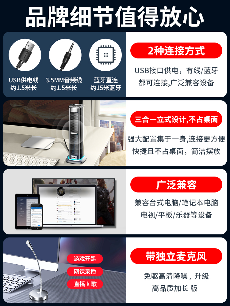 Sony Sony computer audio desktop home high volume small speaker heavy subwoofer high sound quality impact 2022 new notebook speaker usb long strip Bluetooth wired game Universal