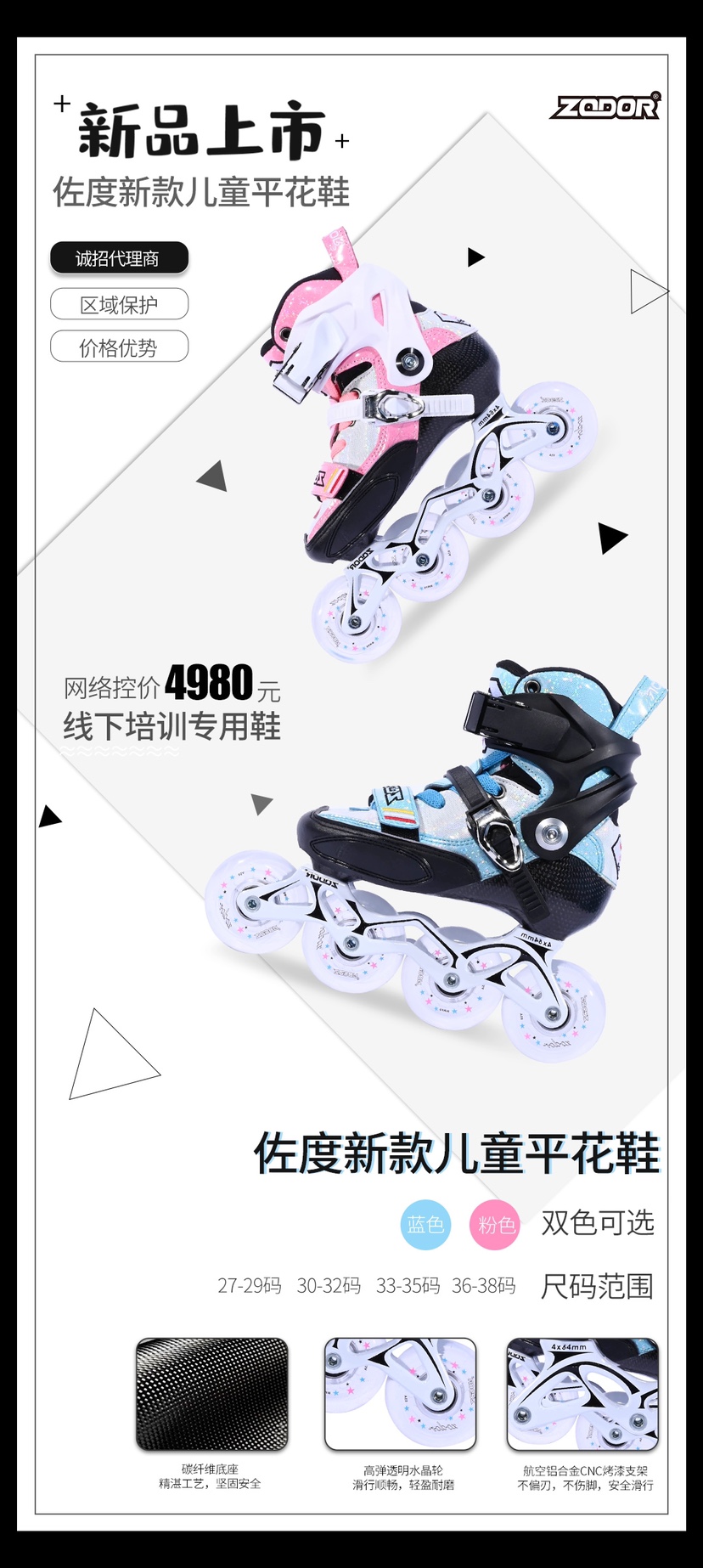 Zoto Carbon Fiber Flat Flower Shoes Children Skate Shoes Men And Women Ice Skates Dry Skate Flowers Style Skate Shoes