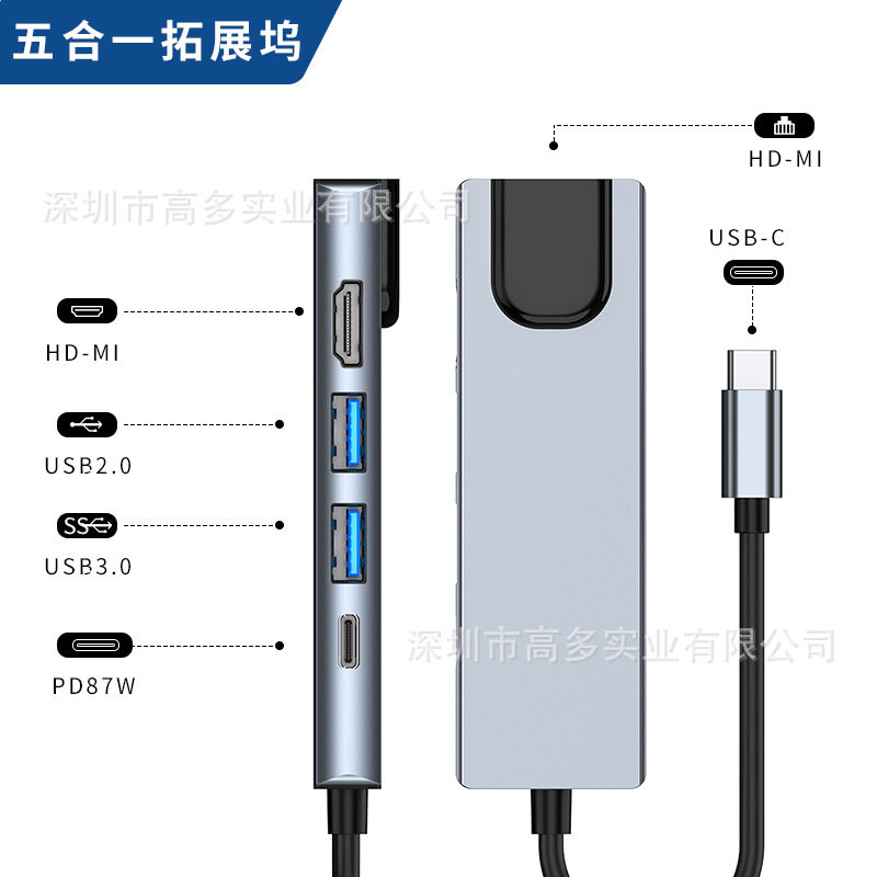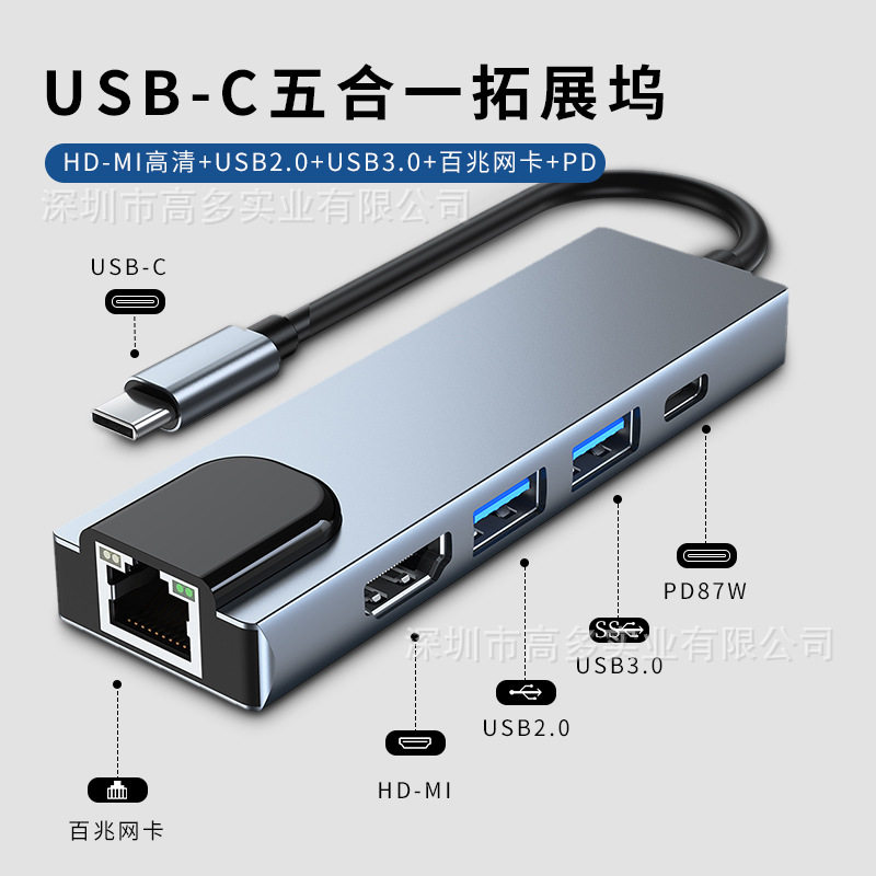 Cross-border typec expansion dock usbhub hub network card for switch five-in-one expansion dock