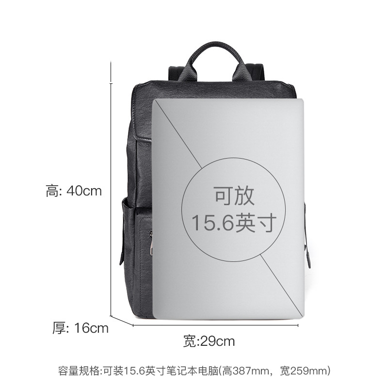 Zipper dark pocket, mobile phone pocket, document slot, computer pocket, main pocket