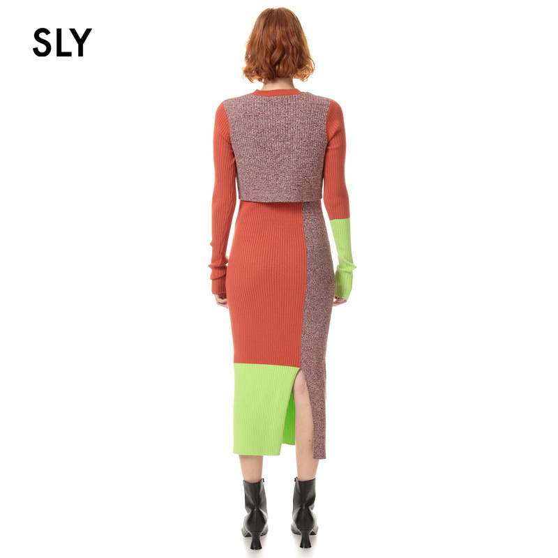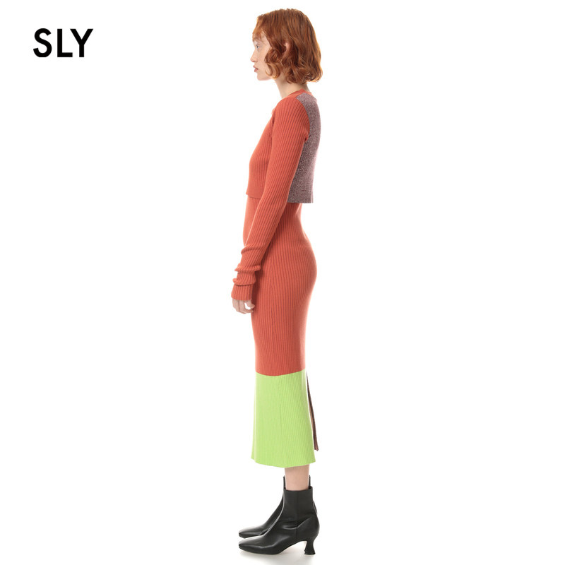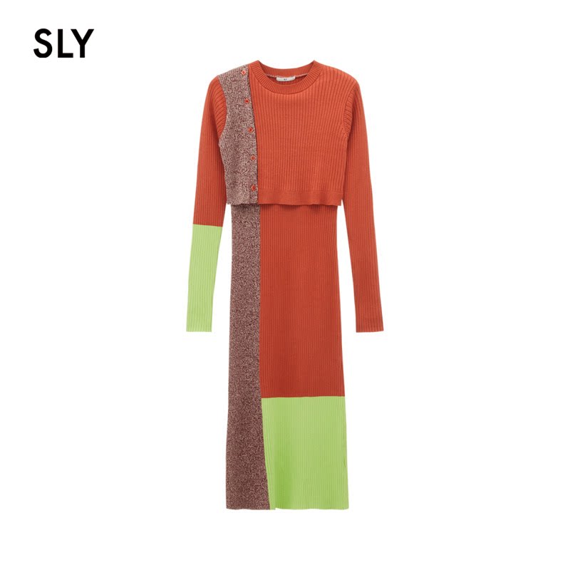 SLY winter new color matching fake two-piece self-cultivation knitted dress female 030EAZ73-5920