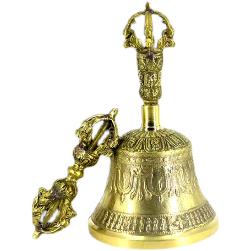 Tibet Family Instrument Nepal made old process pure copper five gold rings pestle bell bell bell bell Tatang Buddhist Tool