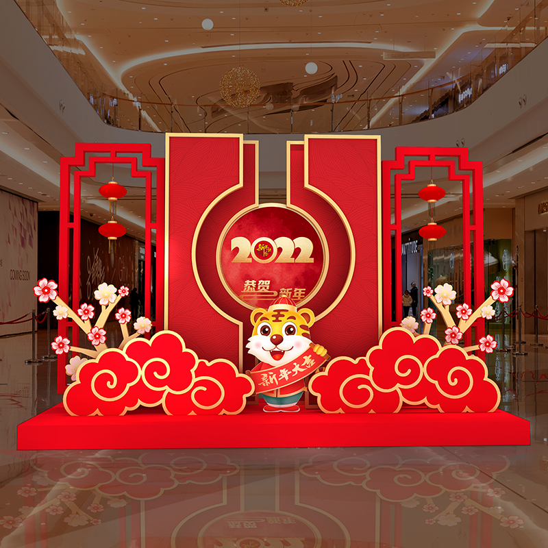 2022 New Year's Day Spring Festival New Year decorations luminous Meichen hotel shopping mall scene layout window large dp ornaments