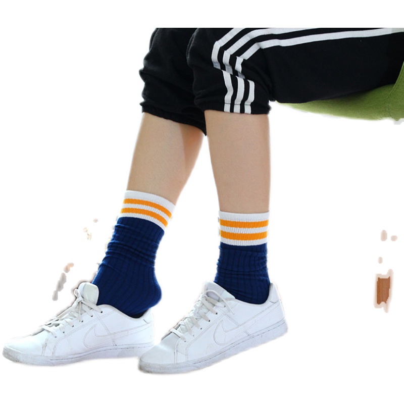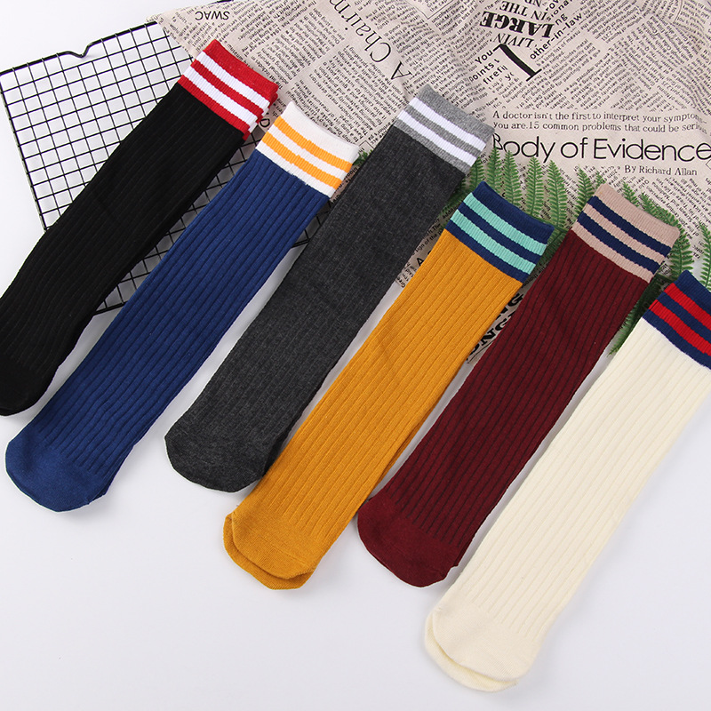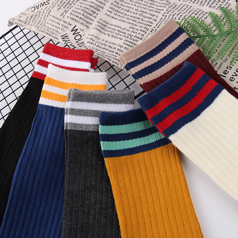 Straight tube bubble socks autumn and winter warm stockings ladies cotton Japanese wild vertical striped student socks high socks