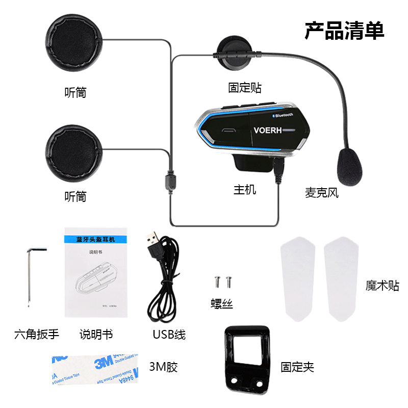 US VOERH Locomotive Safety Helmet Bluetooth Headphone Riding built-in full helmet talkback All-car delivery headphones