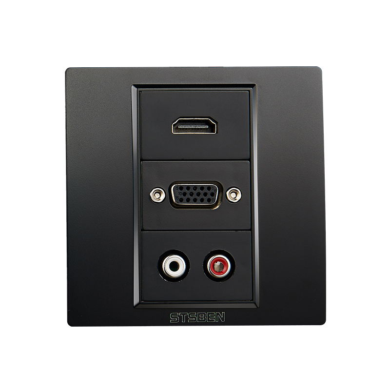 Type 86 Wall Concealed multimedia panel Black TV HD HDMI VGA AV Lotus Lotus Audio Socket