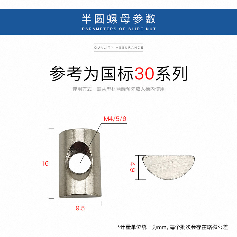 Half round nut National standard aluminum extrusion material accessories flat head rectangular nut 3030 4040 type M4M5M6-M8