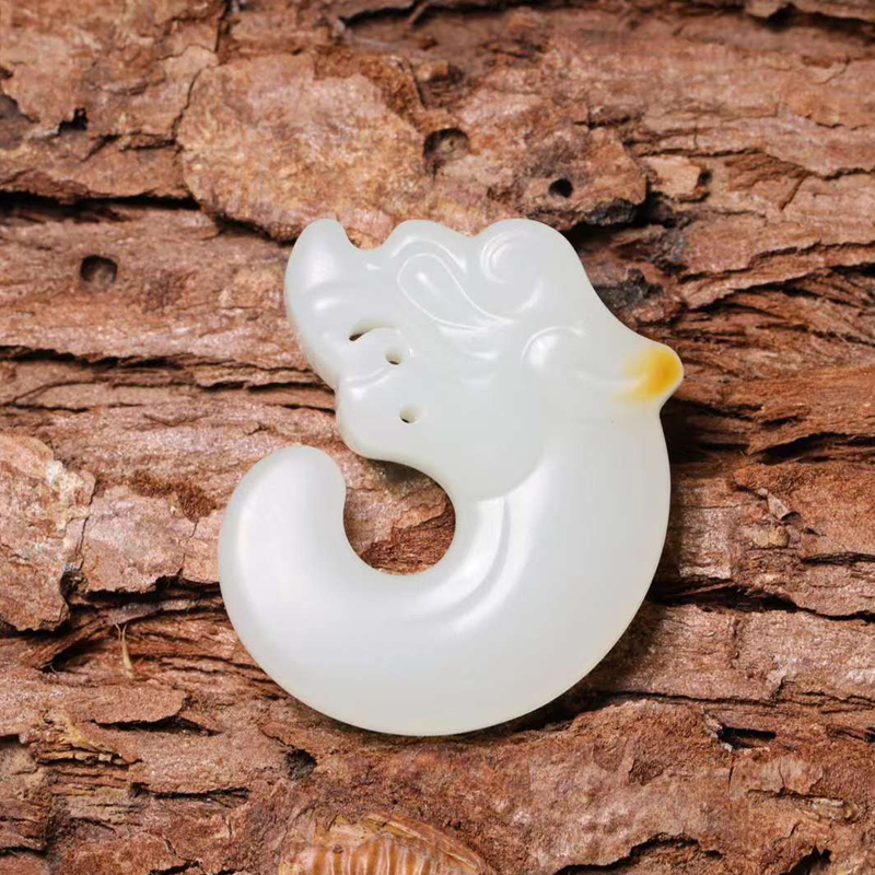Welfare Xinjiang Hetian jade seed material antique dragon pendant original leather oily foot antique jade pendant necklace pendant dragon buckle