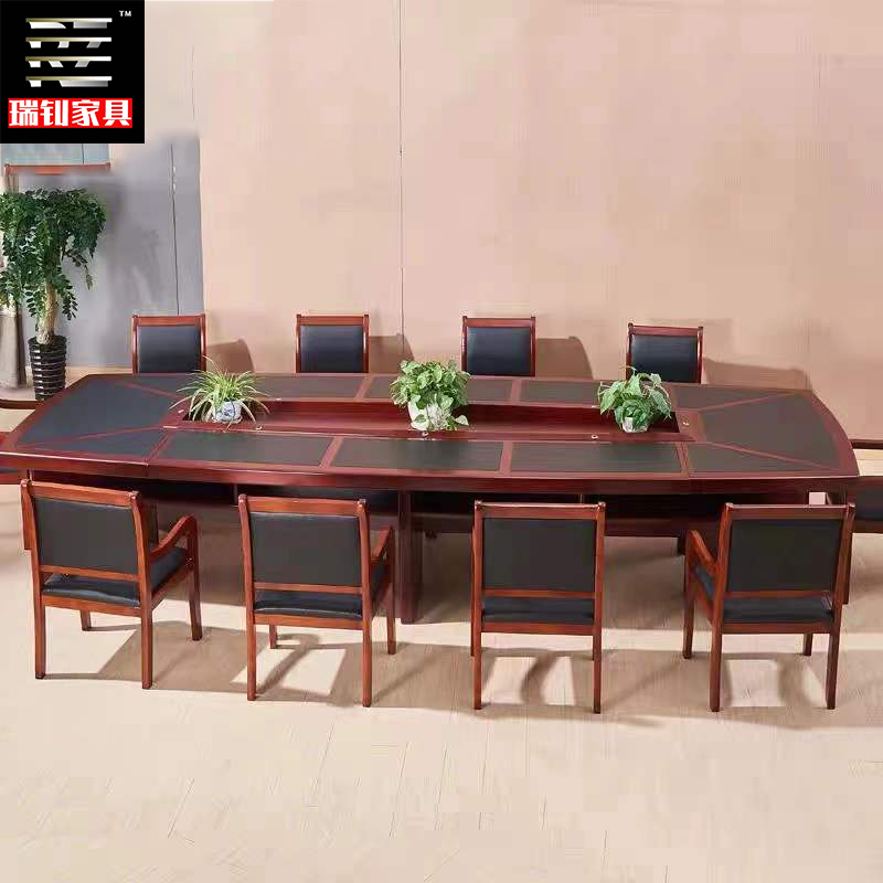 Solid wood conference table paint veneer table 11-15 people rectangular workbench table and chair combination business office