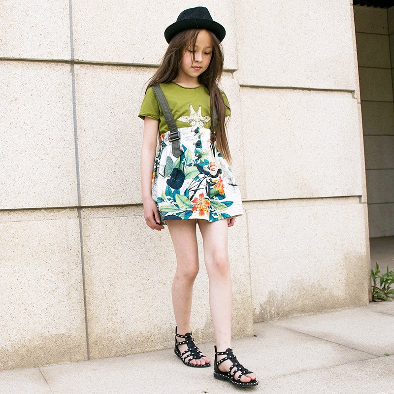 Le Wenxi Children's Wear 2022 Summer New Girls' Skirt Retro Floral Skirt Thin Cotton Suspender Skirt