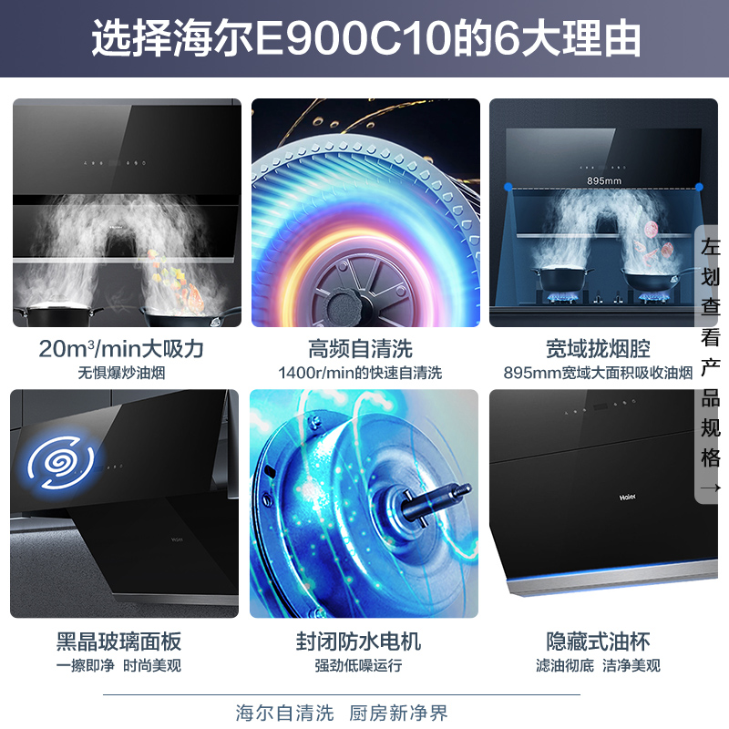Haier C10 Intelligent cleaning extractor hood small home kitchen large suction side suction official flagship store
