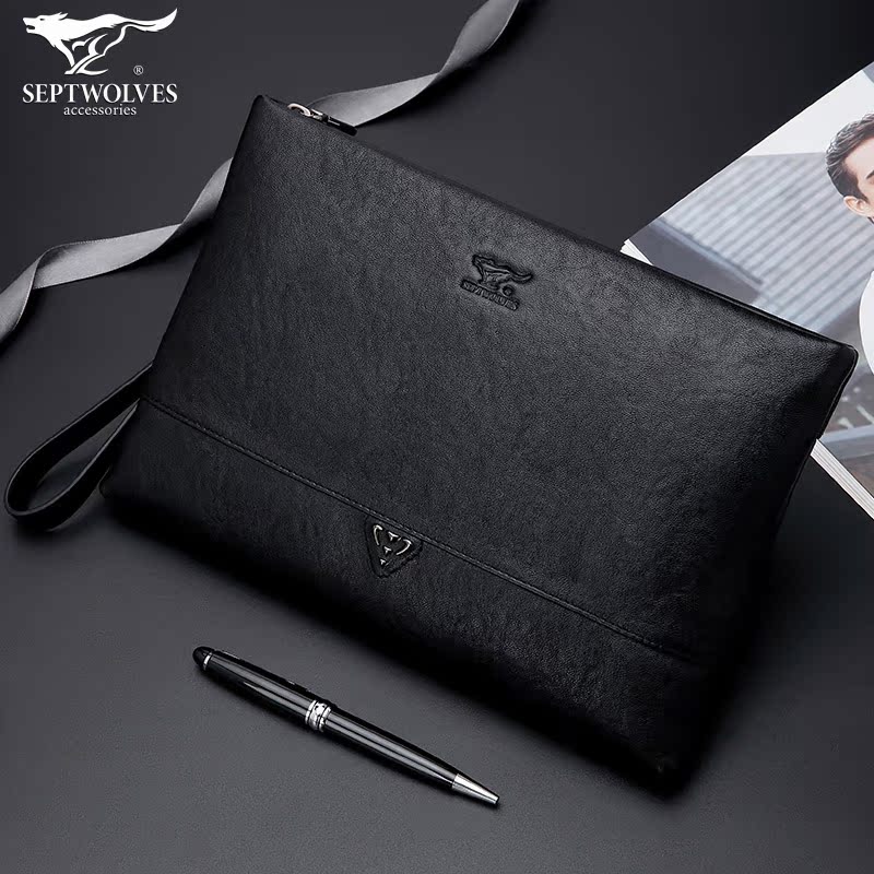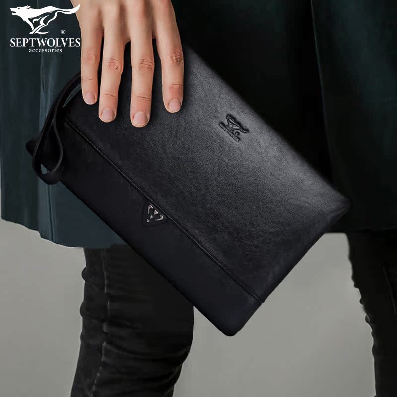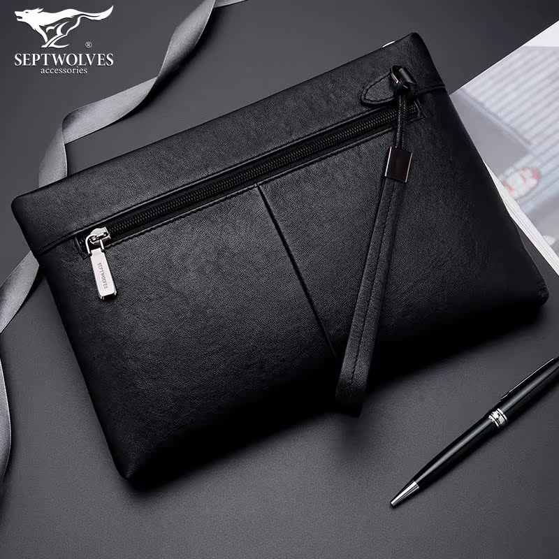 Septwolves Handbag Men's Genuine Leather Top Layer Cowhide Premium Sense Light Luxury Wallet Large Capacity Mobile Phone Bag Men's Trendy Bag