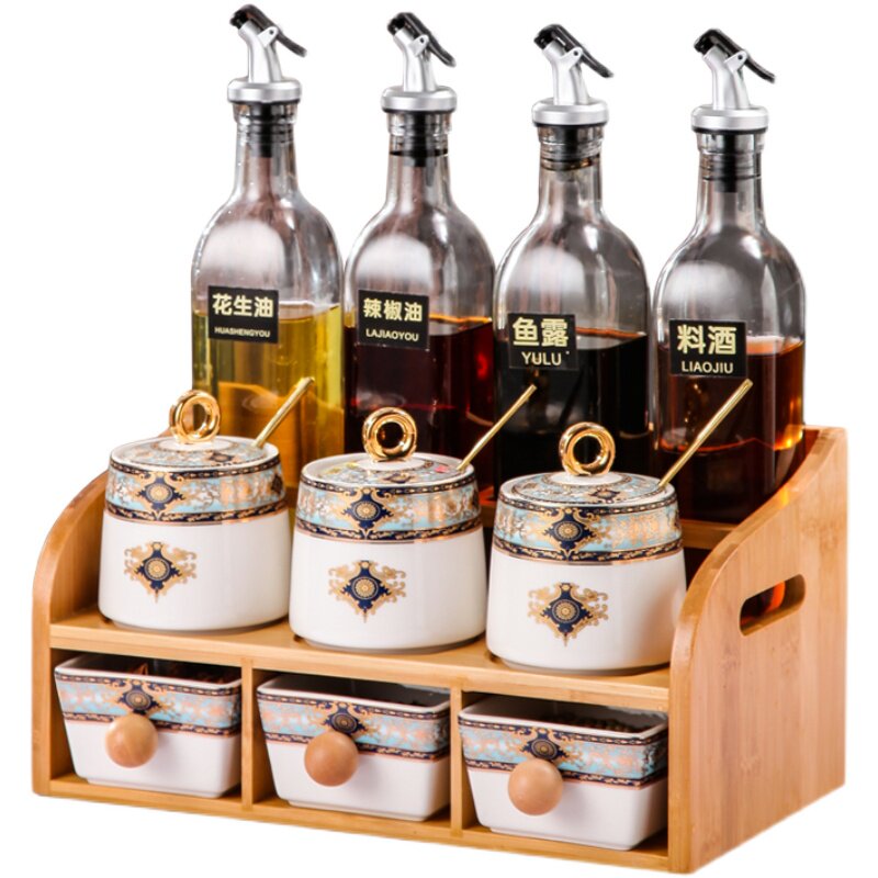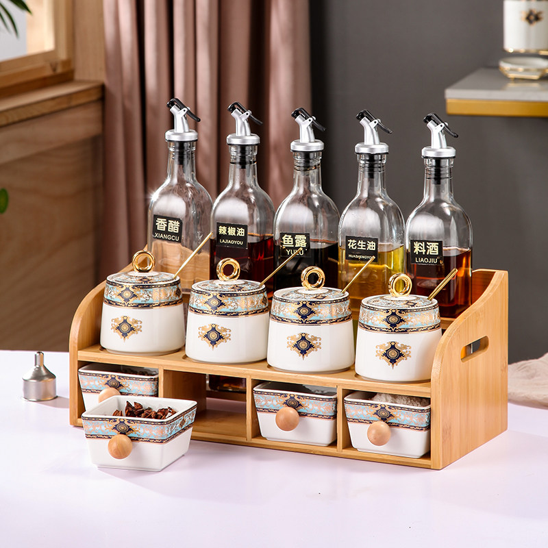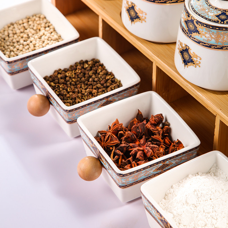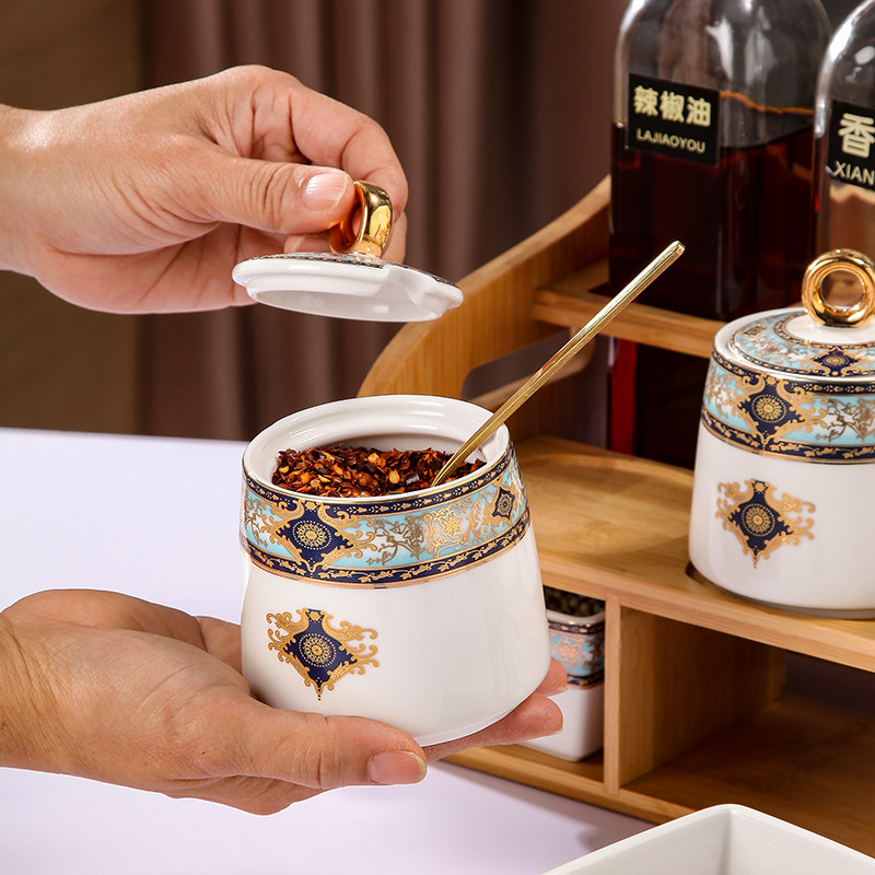 Methodist European Ceramic Flavor Box Household Kitchen High-end flavor cans Salt Salt Sauce Set