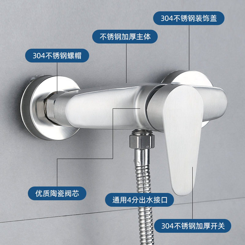 Thickened 304 stainless steel shower faucet hot and cold water mixing valve bathroom powder room shower shower concealed faucet