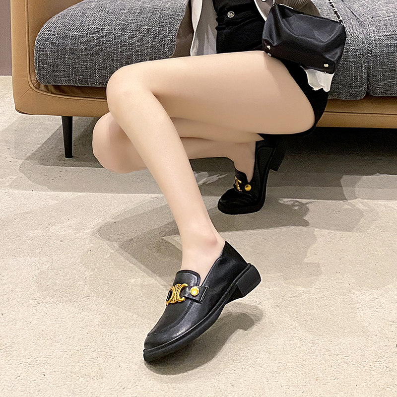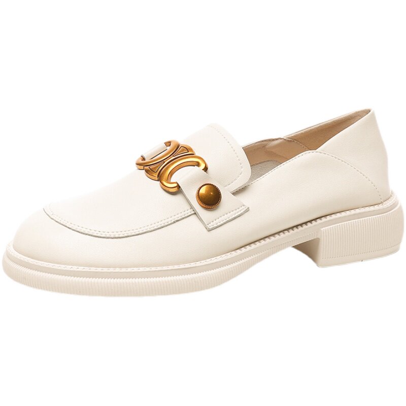 Lefos shoes women 2022 new genuine leather sloth flat bottom wide head retro single shoes round head Inn wind small leather shoes soft bottom