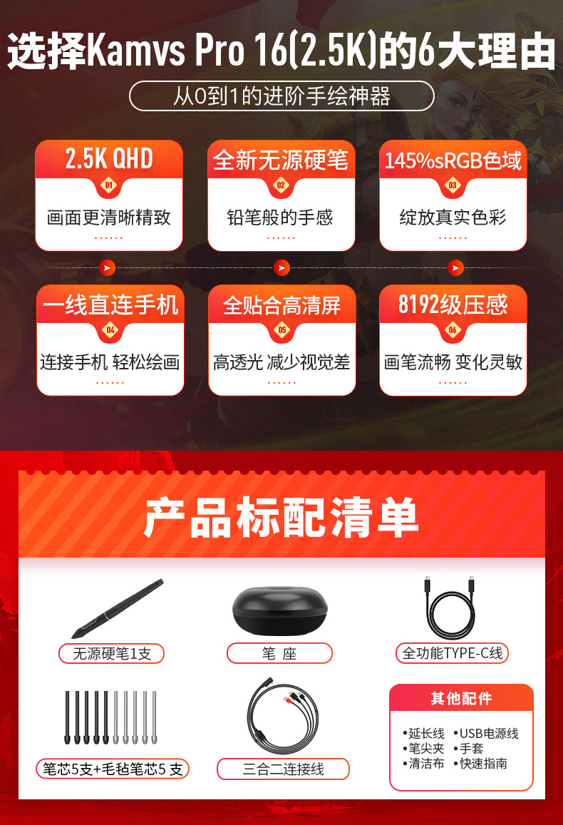 Painting King Kamvas Pro16 (2 5k) digital screen can be connected to mobile phone drawing computer painting screen LCD drawing tablet