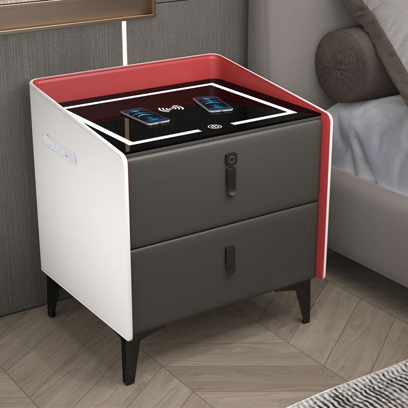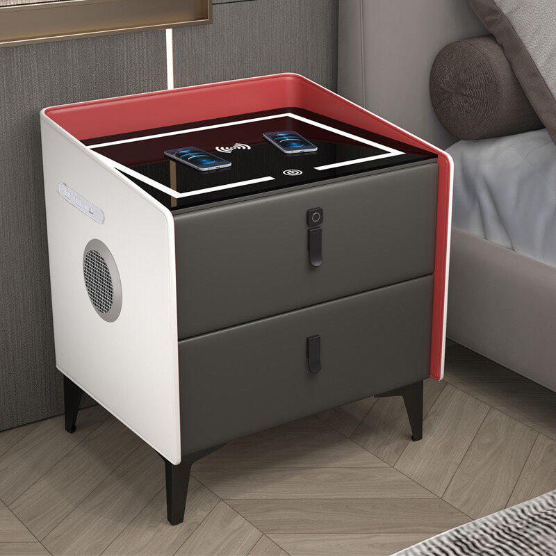 Gray-Luxury-Fingerprint Lock Audio Wireless Charger USB Smart Light Gray-White Contrast-Deluxe-Fingerprint Lock Audio Wireless Charger USB Smart Light Gray-White Contrast-Smart