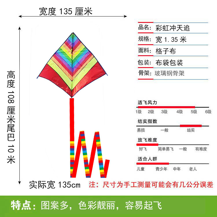 Children's cartoon large adult kite rainbow chases 10 meters tail manufacturer new Weifang Kite Amazon