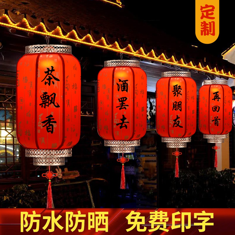 Outdoor waterproof sunscreen imitation antique goat leather lantern hanging light advertising customized outdoor decoration hotel door head palace lamp print character