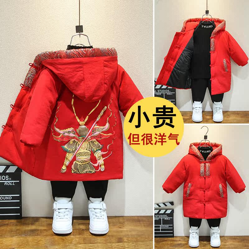 Boys' New Year's Clothes, Baby Children's Tang Suits, Chinese Style Winter Red New Year's Clothes, Festive Children's Thickened Padded Clothes