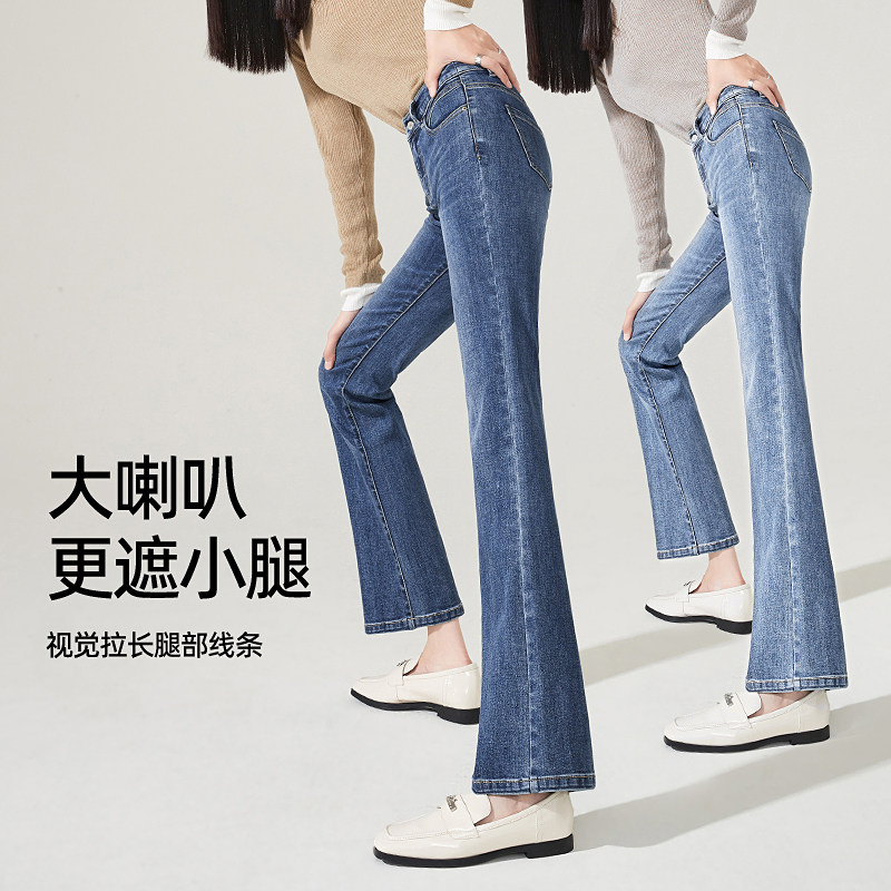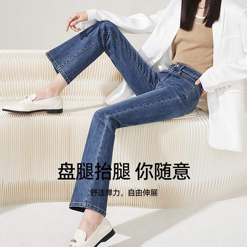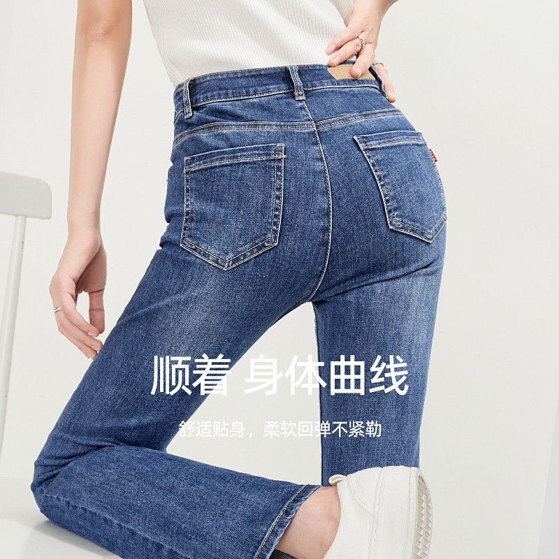 Yiyang nine-point denim micro-flare pants women's 2022 spring and autumn new style slimming horseshoe pants elastic flared pants 8127