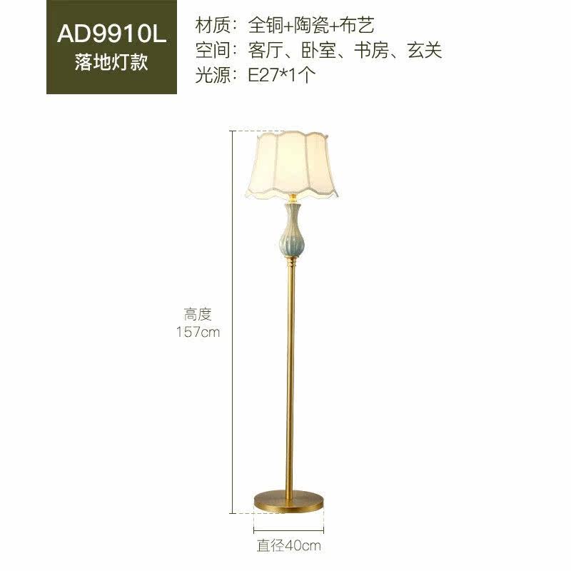 Lushi copper lamp floor lamp European simple modern all-copper ceramic fabric home lamp size: 40 *1