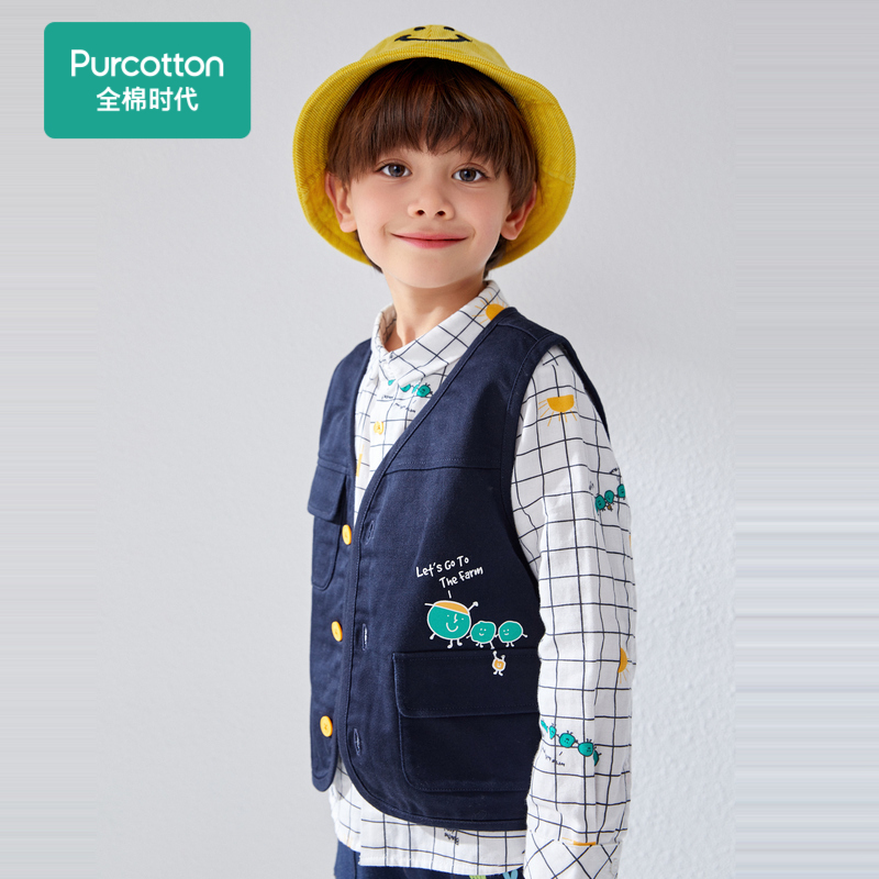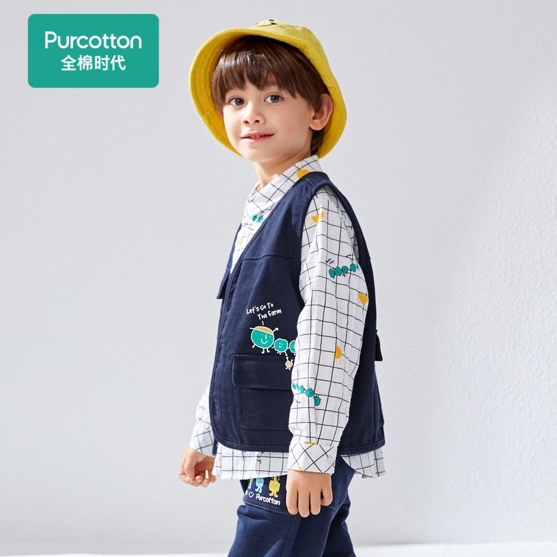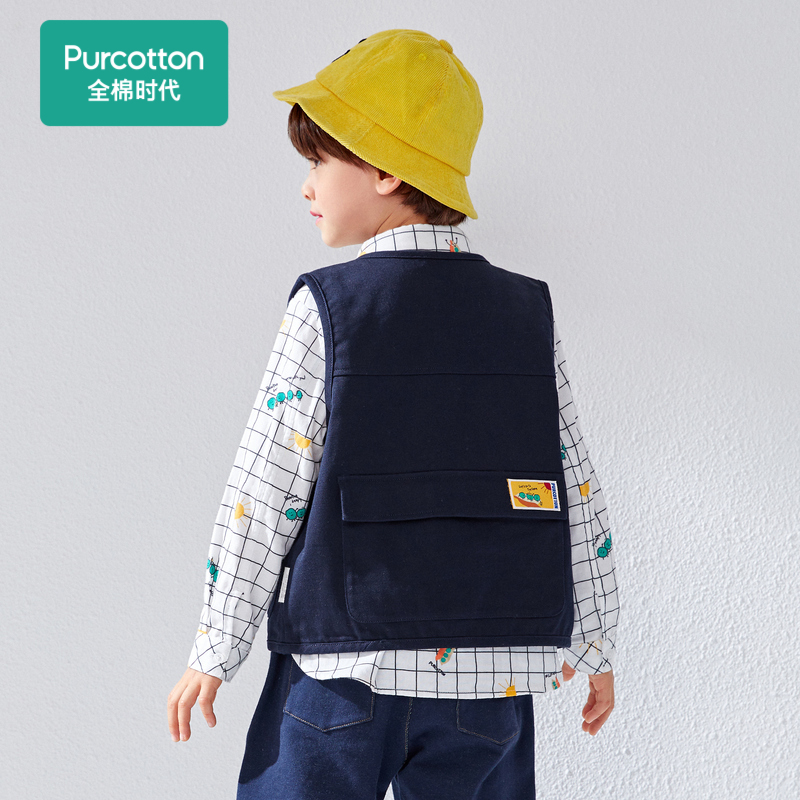 Full Cotton Age Children's clothing 2022 spring and summer boy shuttle woven waistcoat without sleeves in thick fashion trendy children outside wearing vests