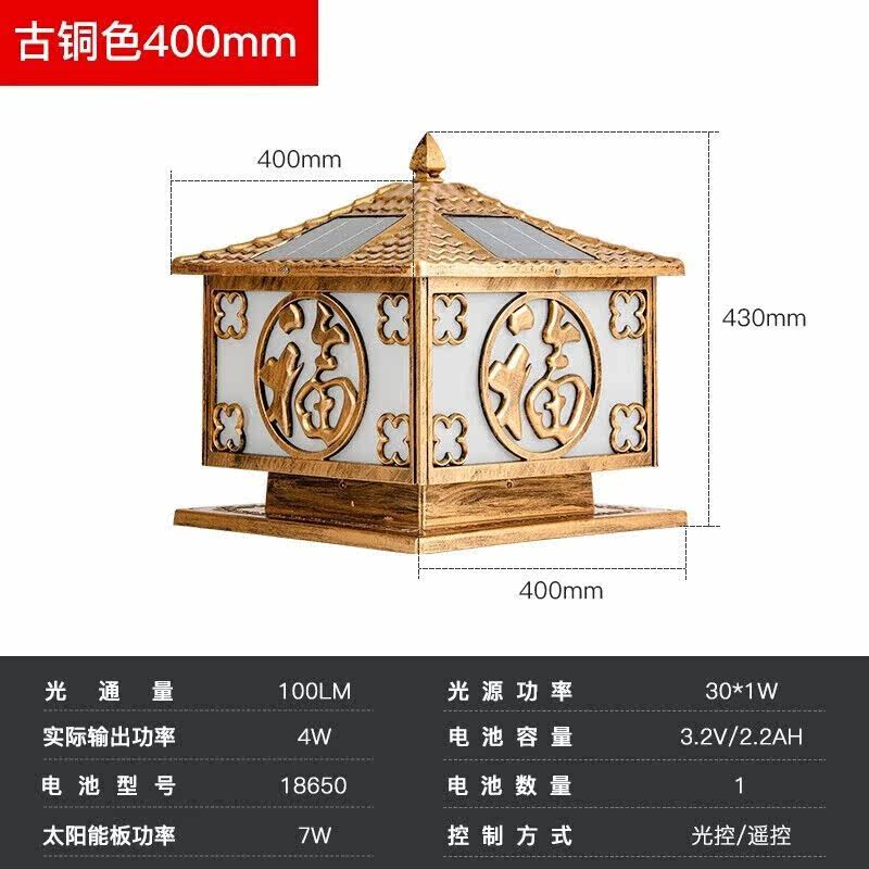 25CM ancient bronze color (fu characters) solar wall column lamp 25CM ancient bronze color (middle word) solar wall column lamp 25CM black (Fuword) solar wall column lamp 25CM black (