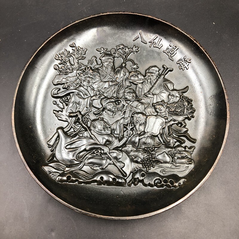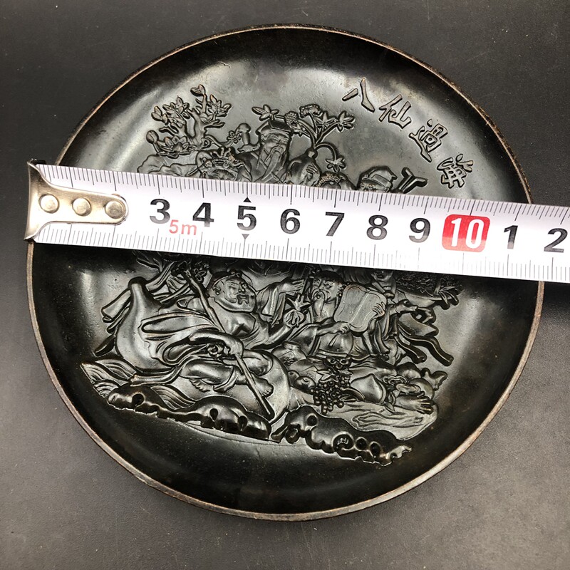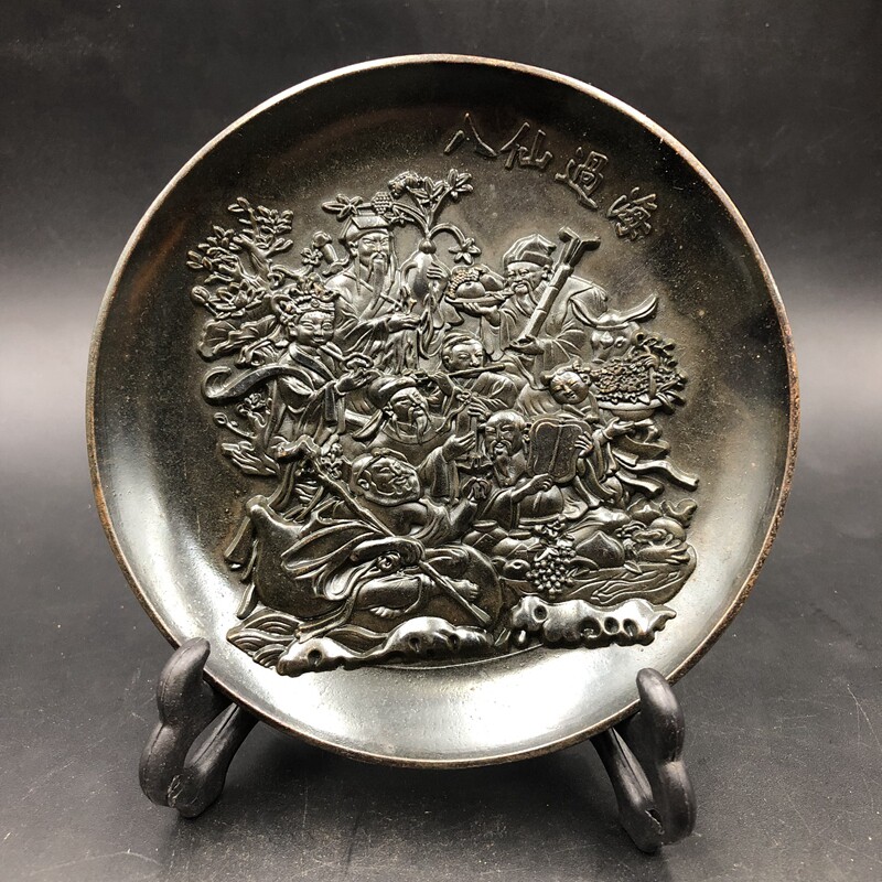 Antique Miscellaneous Plate Eight Immortals Cross Sea Plate Small Plate Home Craft Decoration Retro Bronze with Bracket