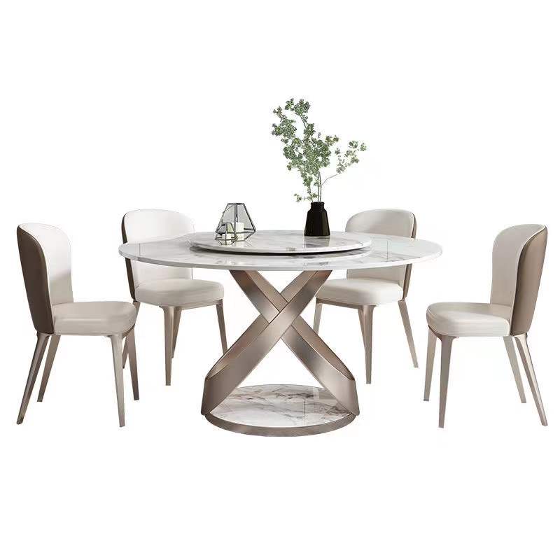 Italian light luxury bright rock board dining table and chair combination modern minimalist living room home marble round dinner table with turntable