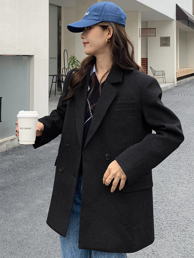 Fat mm large size high-end suit jacket female black loose casual small suit interview dress 200 catties winter fashion
