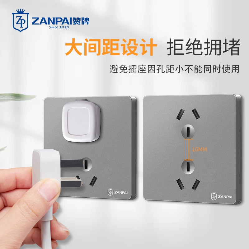 Gray six-pin socket 86 type wall type 33-pin double three-three plug 6-pin 10a power supply hidden switch socket panel