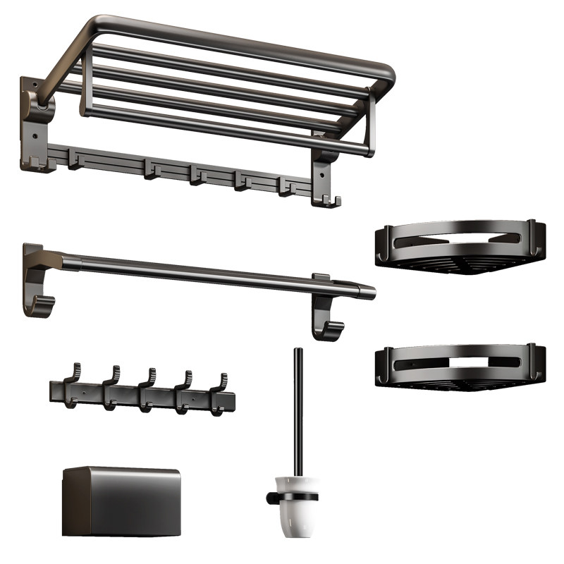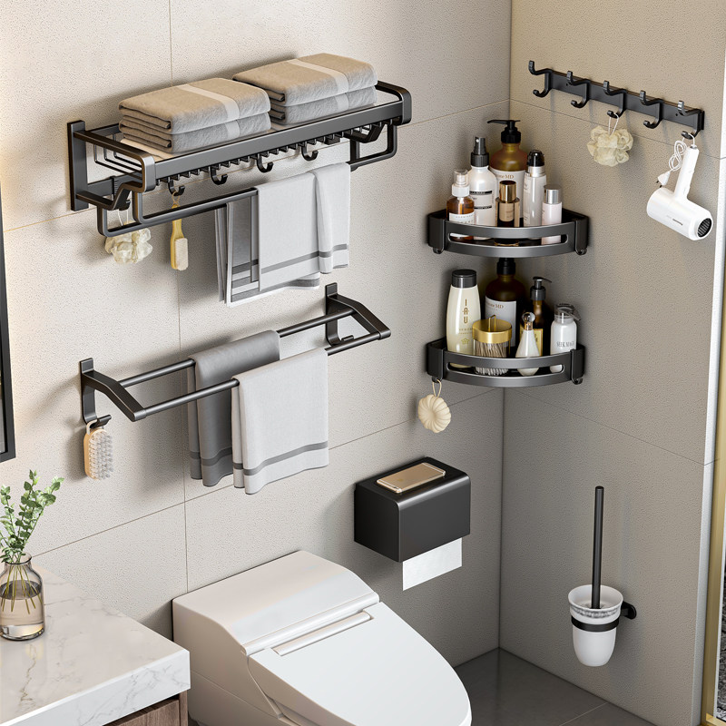 Space Aluminum Bathroom Wall-mounted Hair Towel Rack Contained perforated Dressing Room Toilet Shelf Bath Towel Rack Bathroom